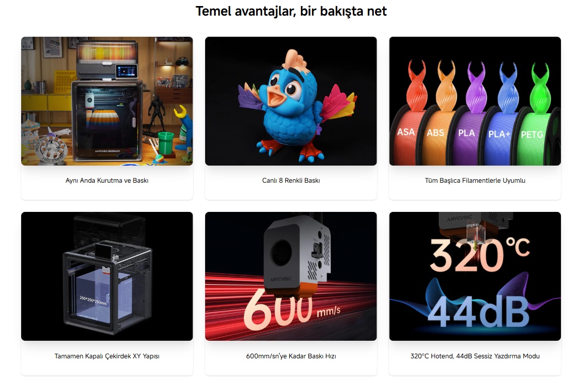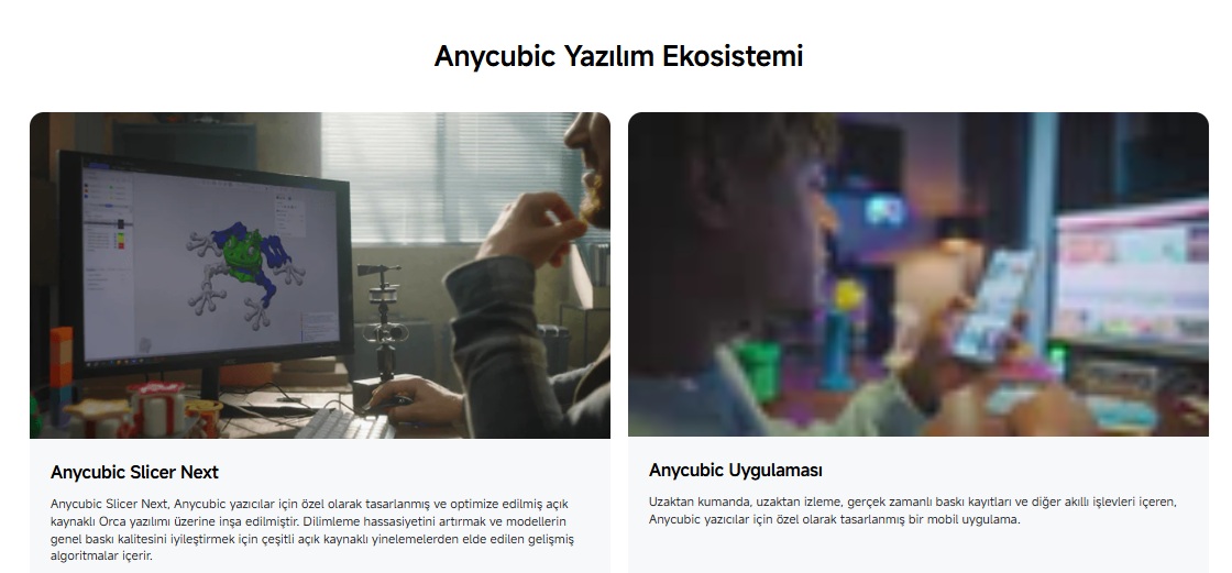 Kontrol ve Yazdırma Yöntemleri : Yazıcı, dilimleme yazılımı, Anycubic APP, USB (sadece yazdırma) aracılığıyla