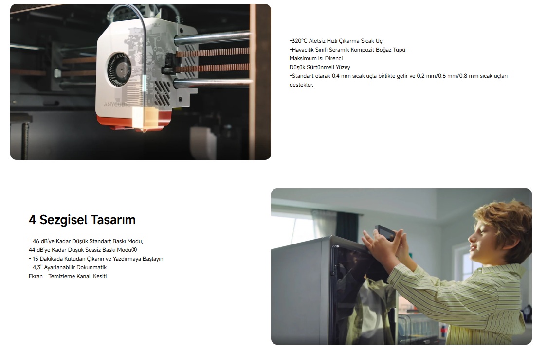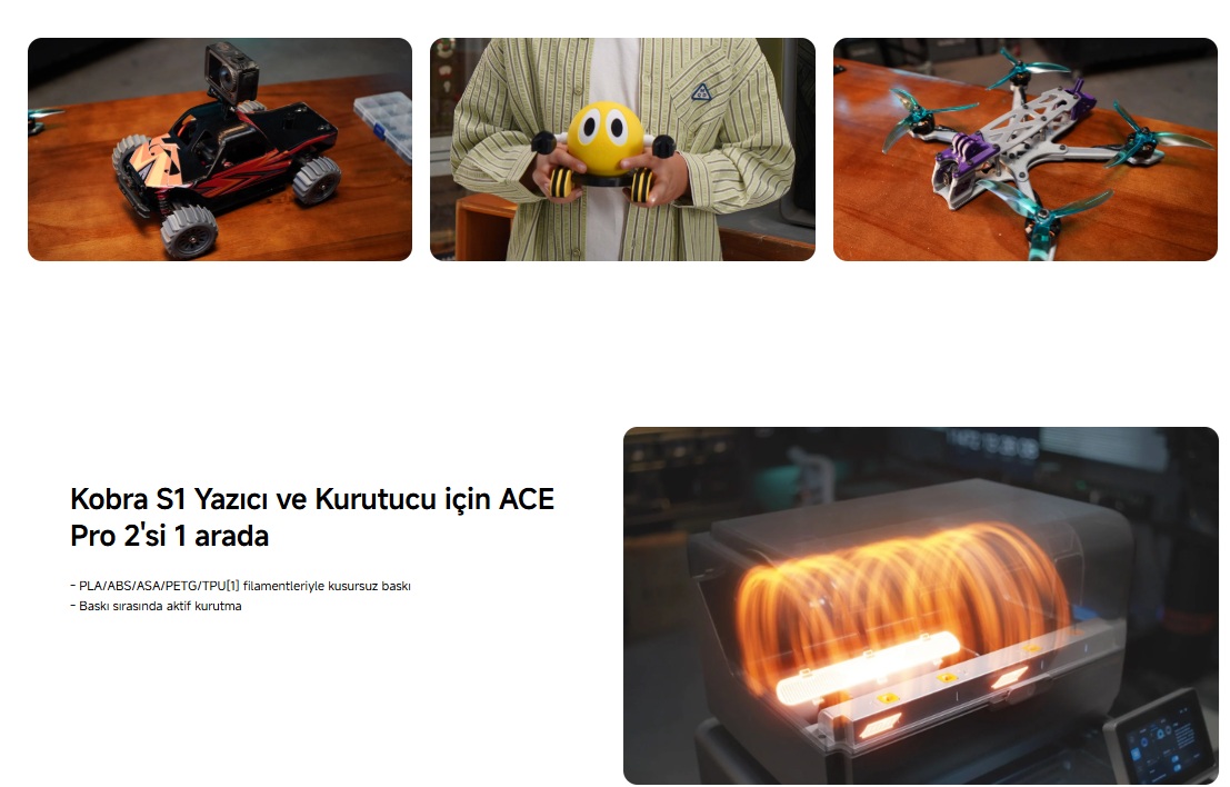 Makine Boyutları : Kobra S1: 400*410*490 mm, ACE Pro: 365,94*282,84*234,5 mm