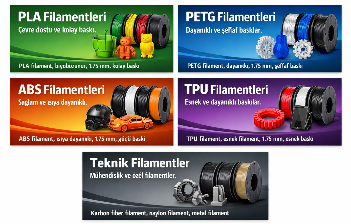 3d yazıcı filament, filament, pla filament, petg filament, abs filament, tpu filament, teknik filament, 1.75 mm filament, yazıcı sarf malzemesi, 3d baskı filament, creality filament, bambu lab filament, urhanshop