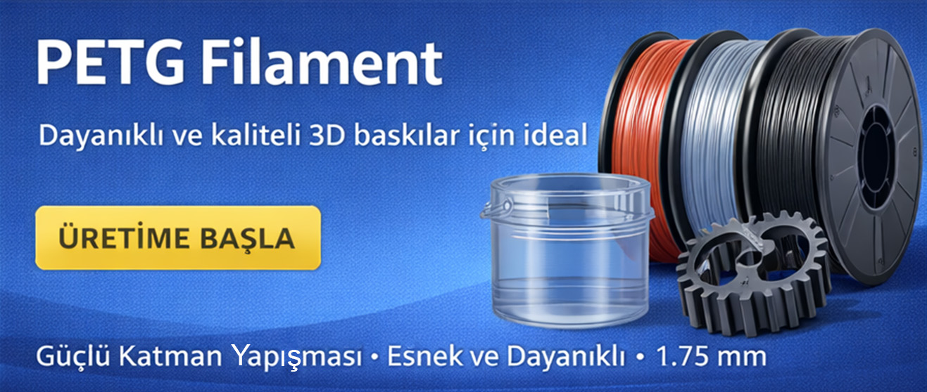 PETG filament, kolay baskı ile dayanıklılık arasında dengeli bir yapı sunması nedeniyle öne çıkar. PLA’dan daha sağlam, ABS’den daha pratik bir seçenek arayan kullanıcılar için oldukça mantıklı bir tercihtir. Özellikle hem dayanıklı hem de güvenilir baskılar almak isteyenler için PETG, en kullanışlı filament türlerinden biridir. Fonksiyonel üretim yapan, daha sağlam parçalara ihtiyaç duyan veya günlük kullanımda kırılmaya karşı daha dirençli baskılar isteyen kullanıcılar için güçlü bir alternatiftir.